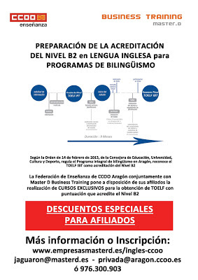 Informamos que Master-D ofrece un curso de Inglés para alcanzar el nivel Toelf equivalente a B2, es a través de una plataforma online pero permite la modalidad presencial si se consiguen grupos de 5 ó 6 personas.