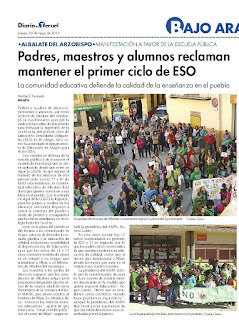 La población de Albalate del Arzobispo se manifestó, la tarde del día 22 de mayo, por las calles de su localidad en protesta por la decisión de eliminar el primer ciclo de la E.S.O. en el C.P. Román García.