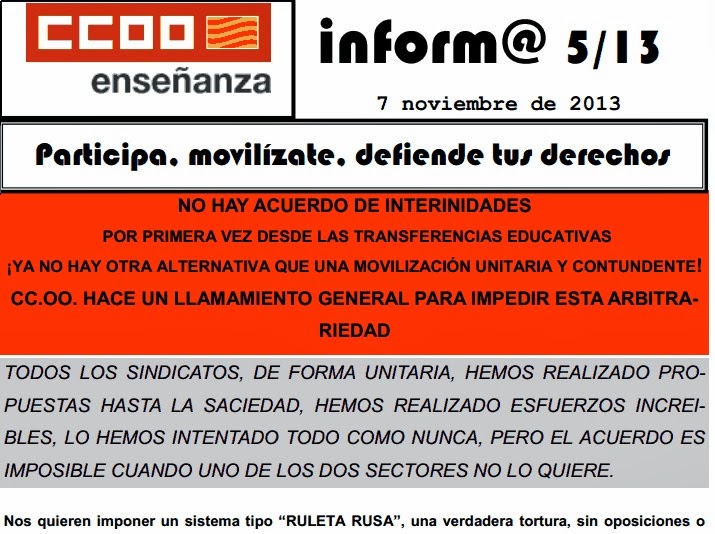Mesa Sectorial Interin@s. No hay acuerdo ni negociación por parte de la Administración Educativa